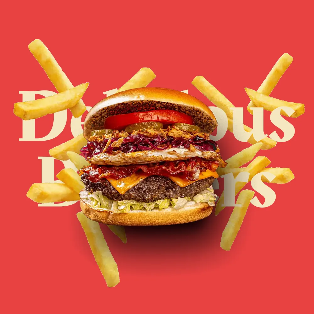 ۱۰۰٪ گوشت تازه، پنیر چدار، سس مخصوص، گوجه، خیارشور و کاهو در نان کنجدی برشته.